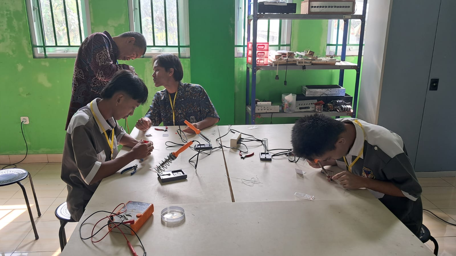 - Teknik Elektronika – identifikasi komponen elektronika, penggunaan multimeter, membaca gambar rangkaian, merakit hingga penyolderan komponen.