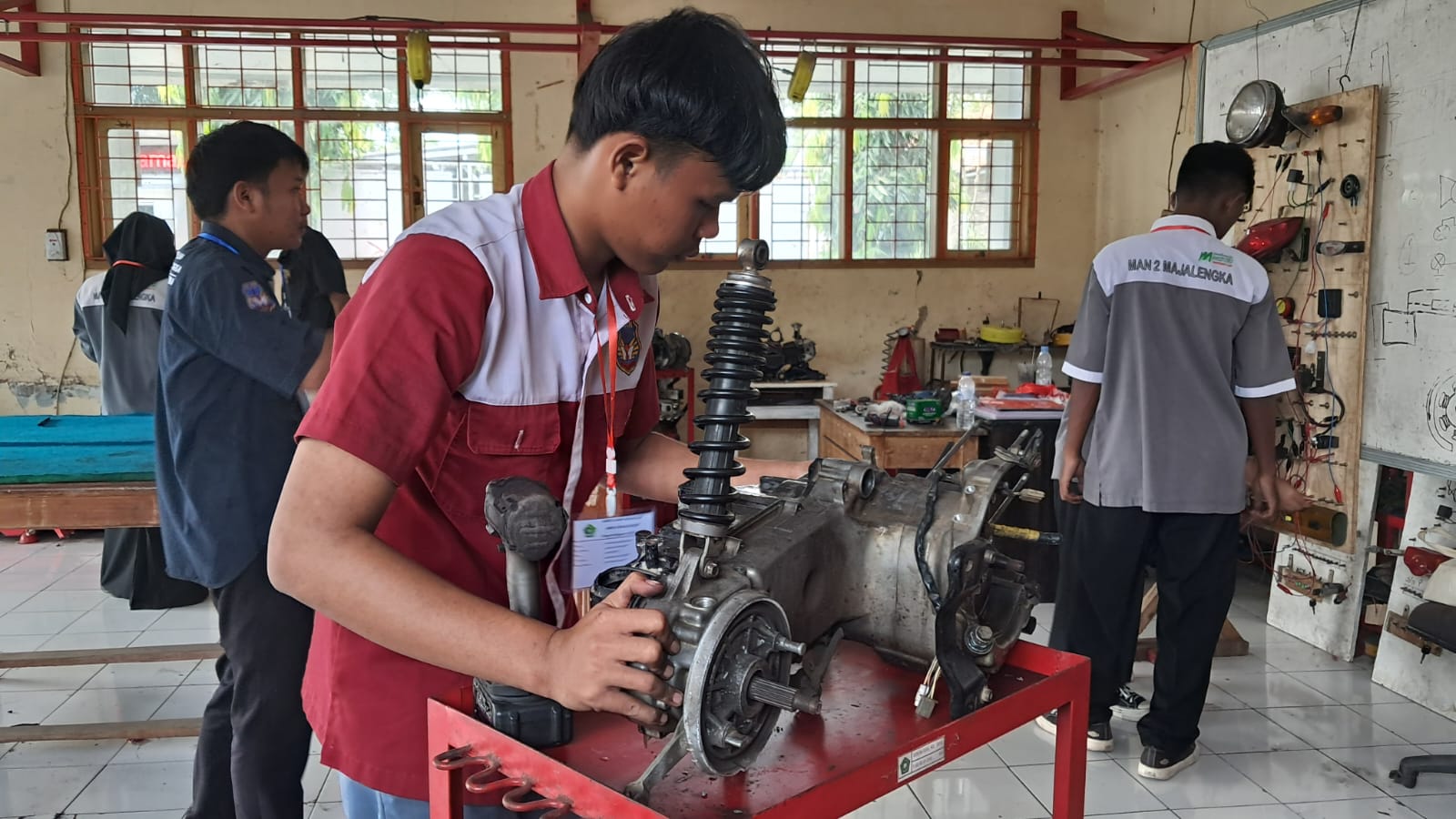 - Teknik Otomotif – praktik merangkai dan mendata komponen CVT, overhaul mesin, pemasangan kabel kelistrikan, membaca jangka sorong, serta identifikasi komponen sesuai standar pabrik.